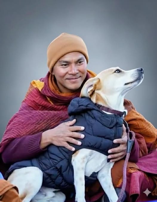 As of today the Buddhist Monks are still on their 2300 mile walk for peace. Pictured here are the lead Monk Bhikku and Aloka the Peace Dog.